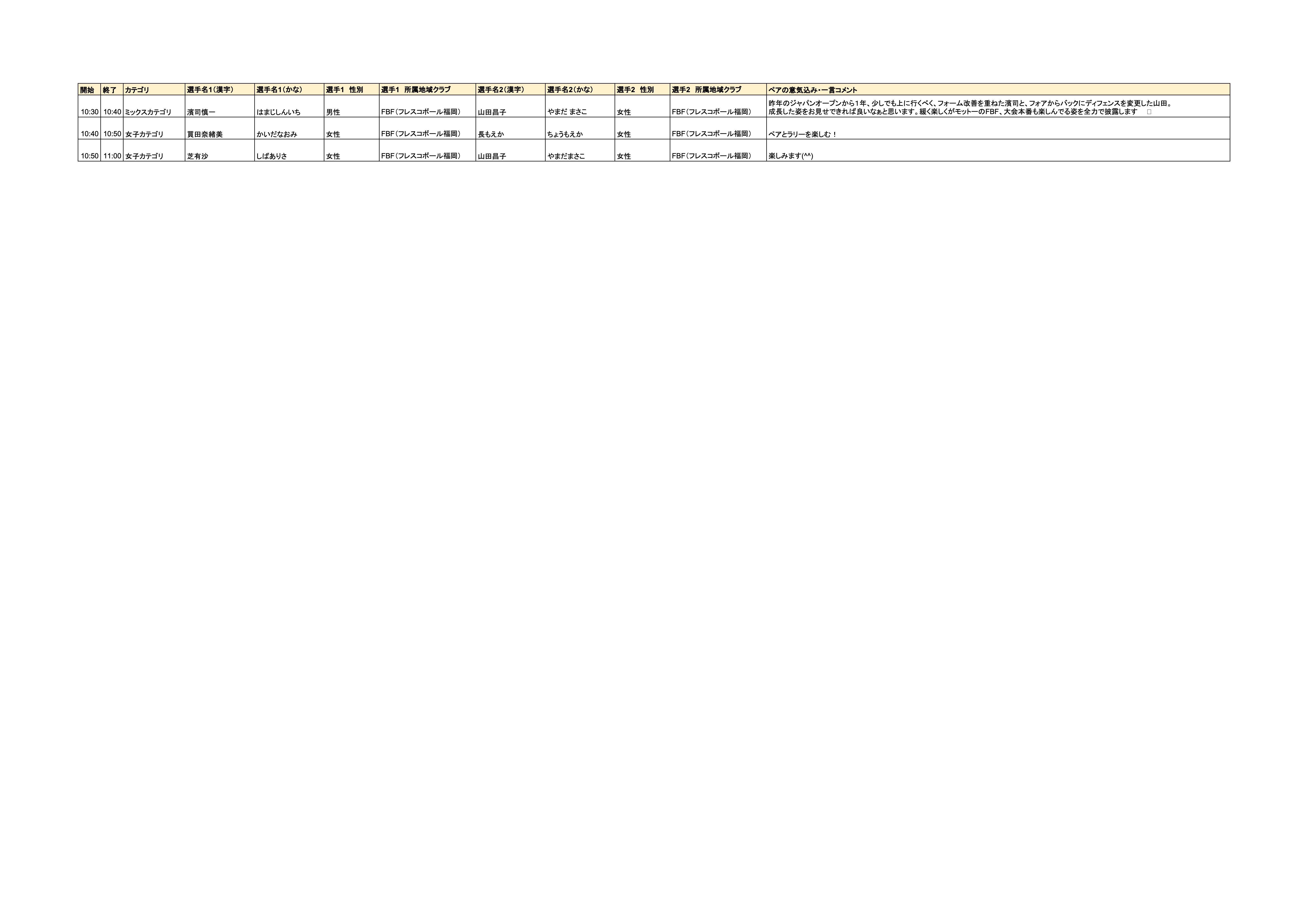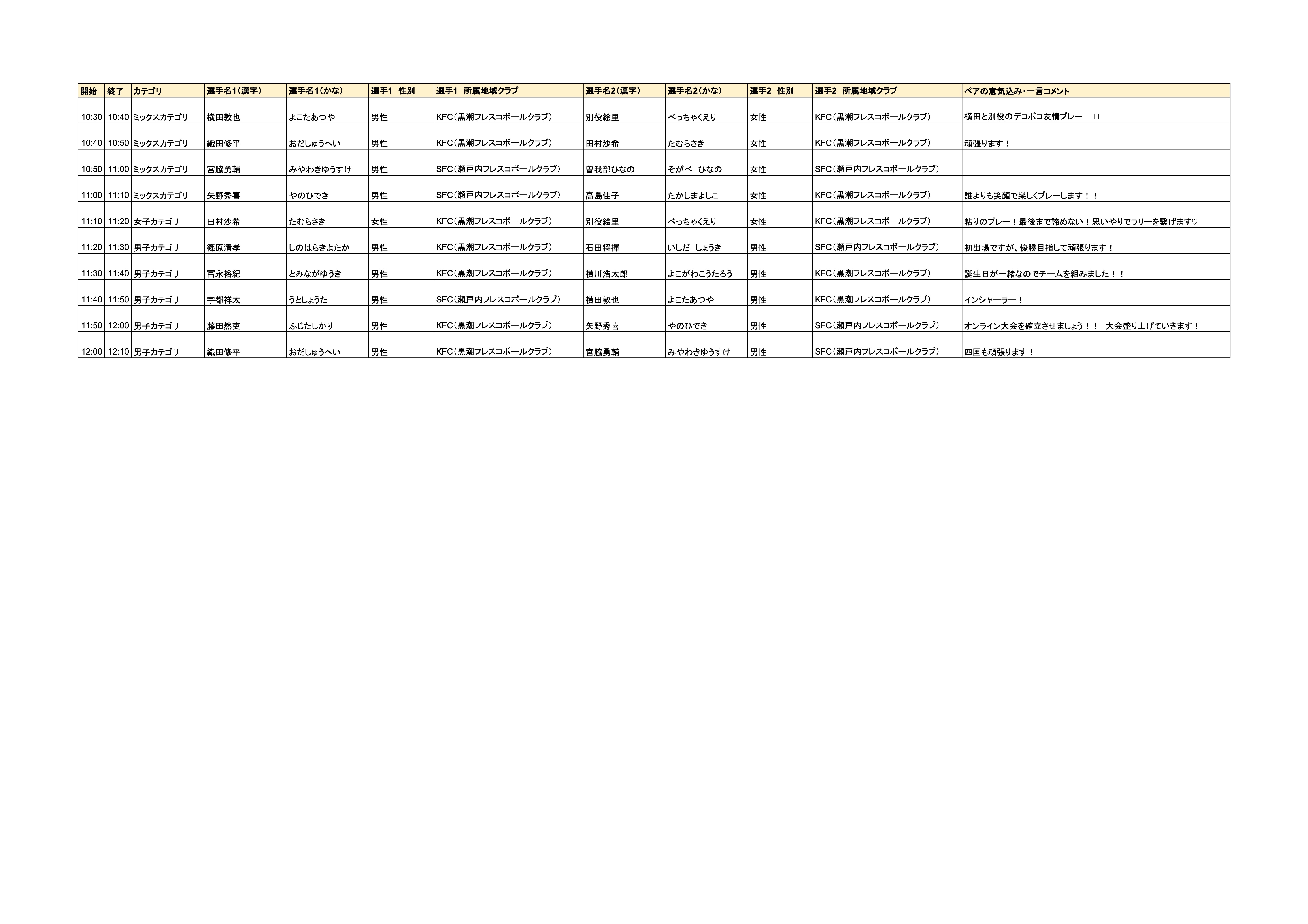 選手集合時刻:〜9:30