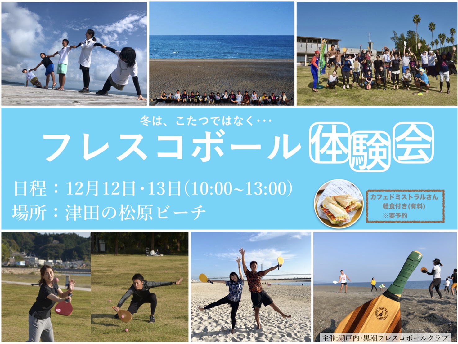 今回は、瀬戸内フレスコボールクラブの拠点である、香川県(津田の松原海水浴場)にて開催いたします。